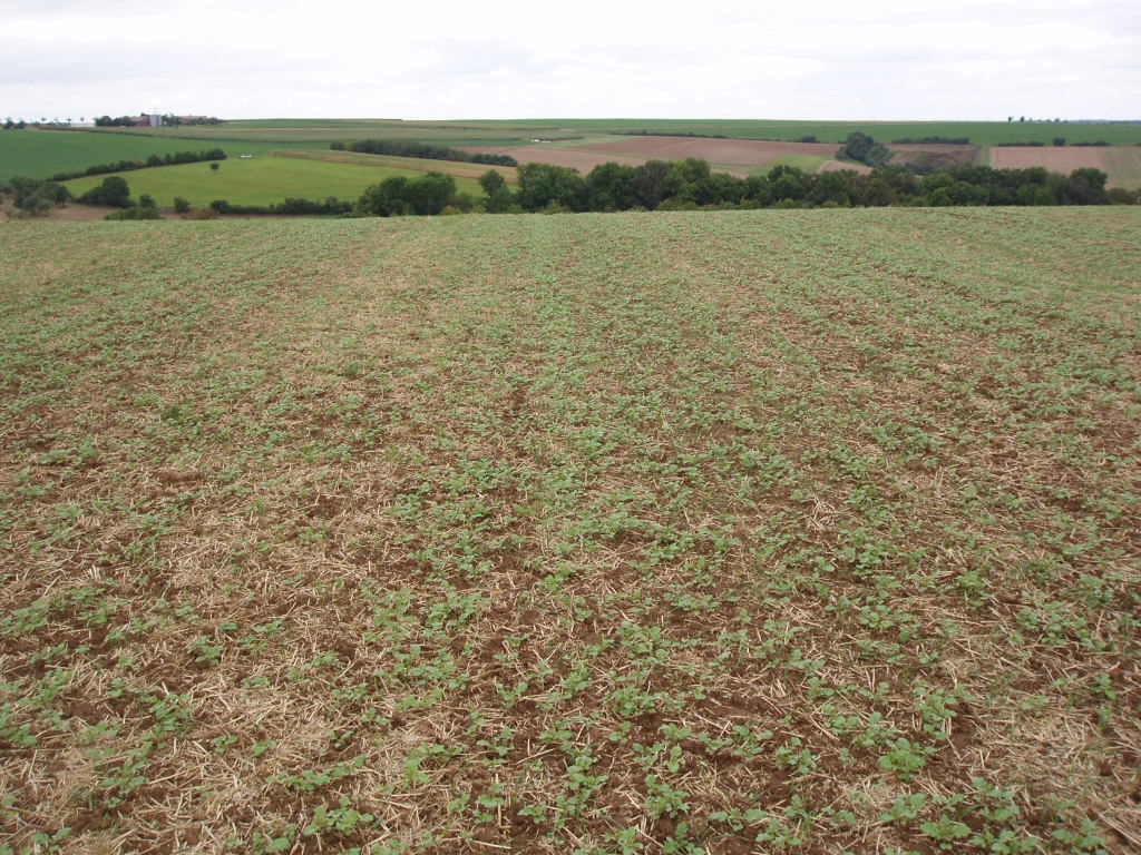 Bild von rechts nach links:Saat von Senf mit Aufbaustreuer 20.08, Senf aufgelaufen 10.09, Senf am 25.11, Abmulchen 3.01, Mulchfläche 24.02., Mulchreste Ende März 2010, ZWF Saat bei feuchten Bedingungen, 2010, schlecht etablierte ZWF (Ölretich+Senf+ Phacelia) Ende September 2010